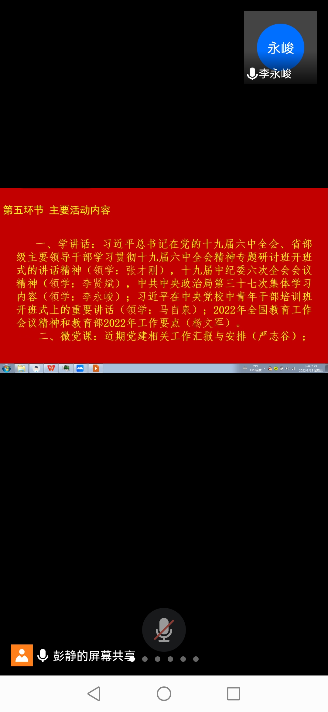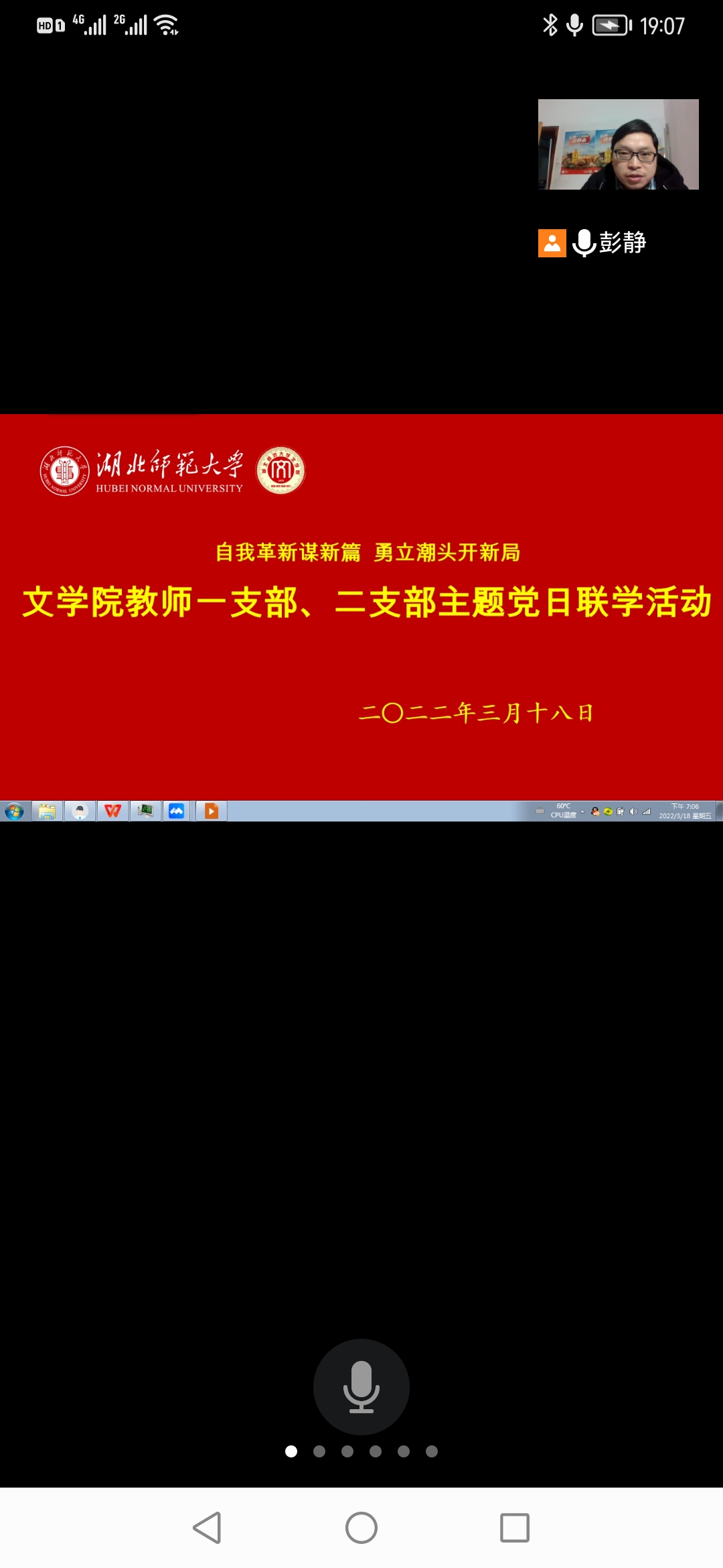 2022年3月18日晚,bevictor伟德官网教师一支部与教师二支部联合开展三月线上主题党日活动,主题为“自我革新谋新篇 勇立潮头开新局”,活动由二支部书记彭静主持。