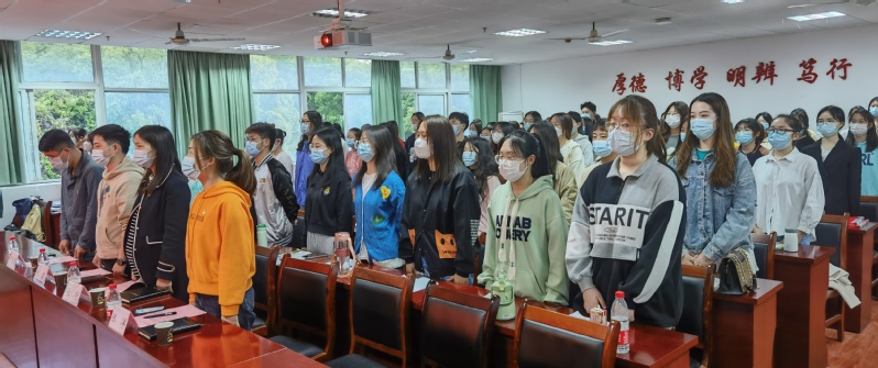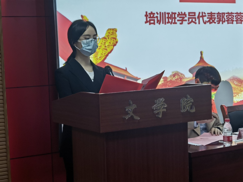 广播电视学2105班郭蓉蓉代表全体学员发言,并郑重承诺:在学习期间遵守纪律,服从管理;树立理想,坚定信念;刻苦学习,磨砺意志;友爱同学,关心集体,争做堪当民族复兴大任的时代新人!