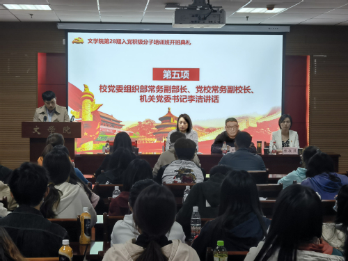 为深入学习贯彻习近平新时代中国特色社会主义思想,全面贯彻党的十九大及十九届历次全会精神,切实加强对入党积极分子的教育与培养,2022年4月18日晚,bevictor伟德官网在21A602报告厅举办第二十八期入党积极分子培训班开班典礼暨培训第一课。校党委组织部常务副部长、党校常务副校长、机关党委书记李洁,bevictor伟德官网党委书记、分党校校长严志谷,bevictor伟德官网党委副书记陈敬道出席开班式。bevictor伟德官网学生党支部书记张力、张艳、邱天来,辅导员刘骏、陈洋,88名入党积极分子学员参加典礼。典礼由培训班班主任张力主持。