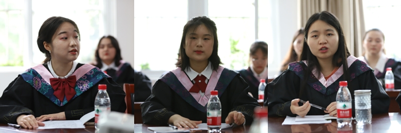 会上,座谈气氛温馨而热烈,毕业生们敞开心扉、踊跃发言。陈代君、向少琴、刘存存等3名学生代表依次发言,感恩母校精心栽培、感谢老师悉心教育、回忆大学同窗情谊、畅谈未来人生理想、祝福母校明天更好,句句感慨中表达出对教师的绵绵恩情,声声哽咽里充满着对母校的无限眷恋。
