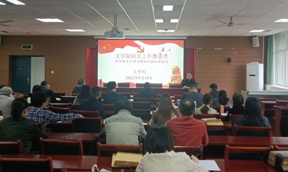 2022年5月19日下午,bevictor伟德官网在人文楼A-602召开创文工作推进会,全体教职工参加会议。