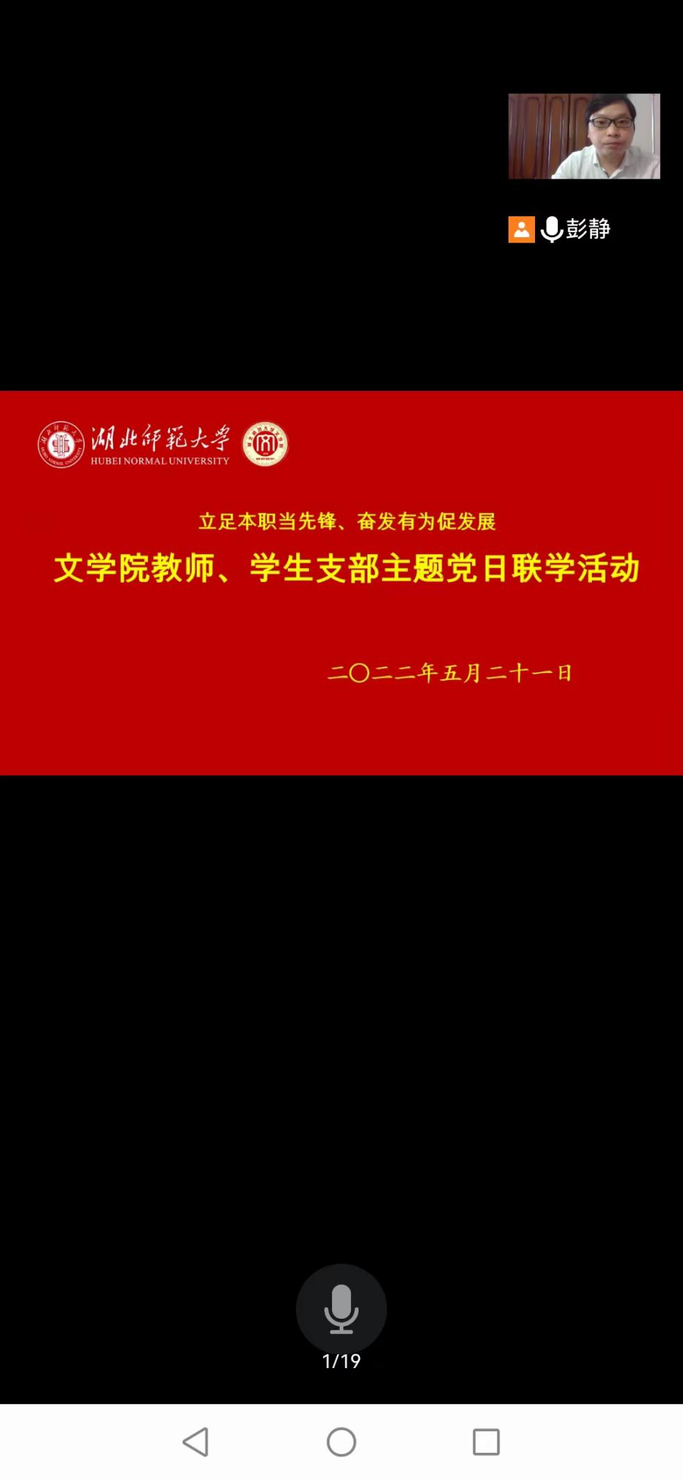 2022年5月21日上午,bevictor伟德官网教师一、二支部联合学生支部开展五月线上主题党日活动,主题为“立足本职当先锋、奋发有为促发展”,活动由教师二支部书记彭静主持。