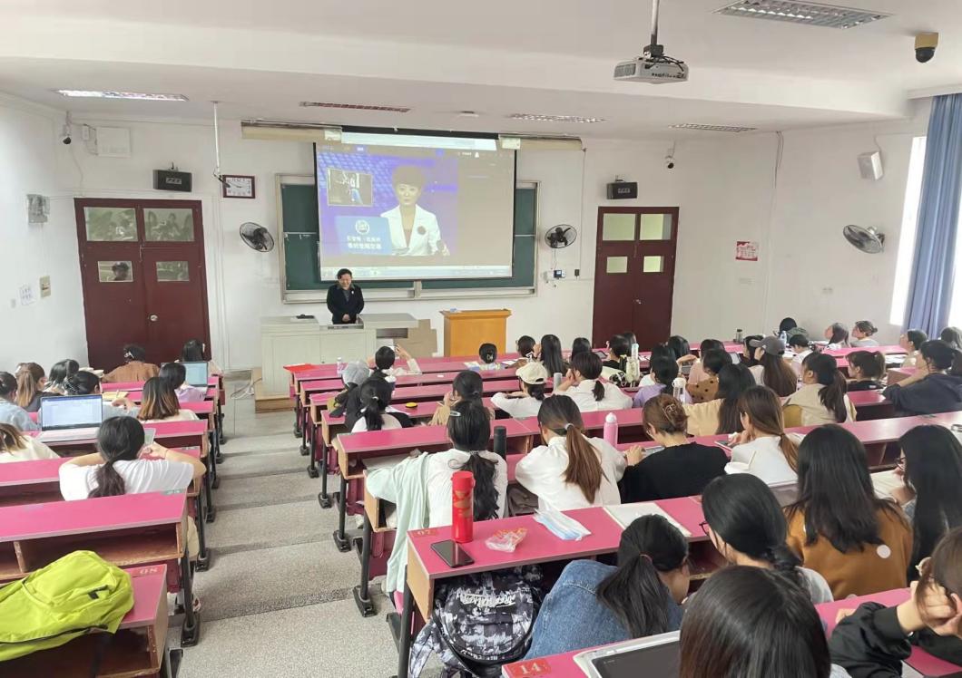 肖雨荻老师基于结合自己丰富的教书育人经验,采用丰富的教学形式,诠释了教师的使命、情怀和担当,讲解了教学理念,分享了教学模式,介绍了教育改革新动向,肖老师的讲座主要从六个方面展开:一是带一份热爱去做教育;二是做到“目中有人,心中有书”;三是对语文单元教学设计举例分析;四是处理好预设与生成的关系;五是共同学习“一节好课的标准”;六是给青年教师几点建议。肖老师告诉大家当一名好老师要热爱教书、热爱课程、热爱校园、热爱生活,要把握“大语文”的教学观,要充分了解学情,精心备课,整体把握教材,紧跟新课程标准的要求,积极探索任务群教学、单元主题教学,进行大语文教学活动设计,深入讲解了统编版高中语文必修上册第七单元项目式教学设计,她勉励青年学子积极探索教育教法,珍惜现有的一切,用欣赏的眼光看世界,乐观进取。现场气氛活跃热烈,互动频繁,讲座结束,台下响起热烈的掌声。
