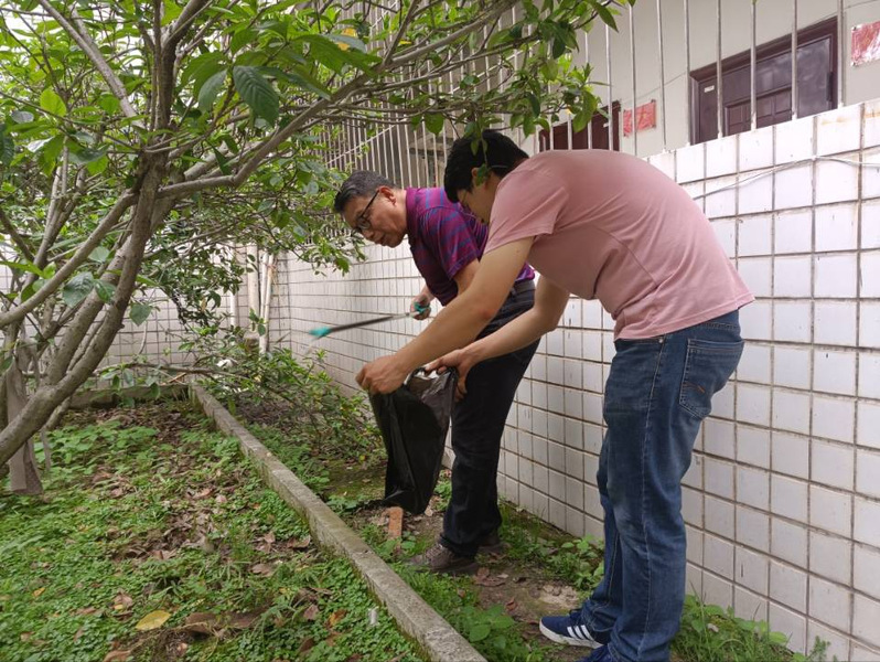 活动过程中,老师们分为多个小组,在包保责任区开展校内环境清扫行动,充分发扬吃苦在前的精神,认真清扫责任区的每一个角落,草丛里的烟蒂、路缘石处的垃圾与枯草都不放过,展现出良好的政治素养和强烈的文明意识。