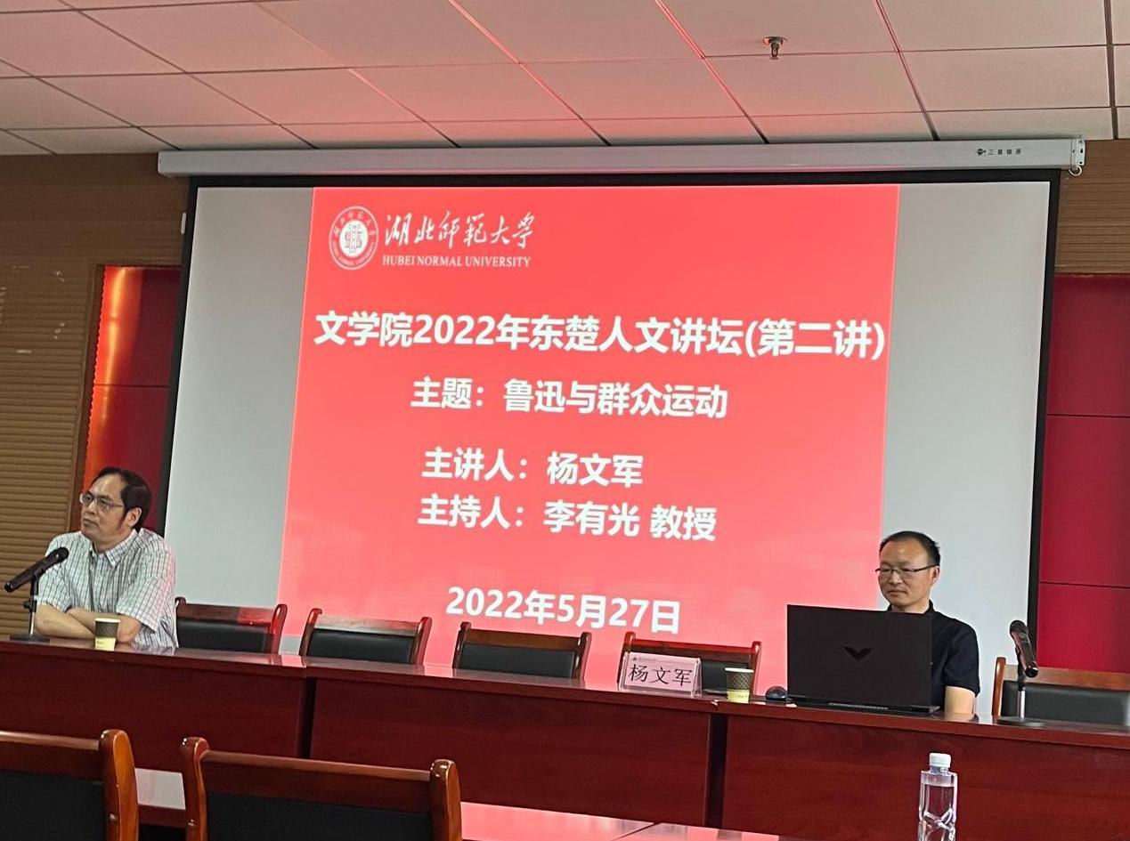 2022年5月27日下午,“东楚人文论坛”第二讲在人文楼A-602学术报告厅举行,由bevictor伟德官网副院长李有光教授主持、现当代文学教研室副教授杨文军博士主讲“鲁迅与群众运动”。