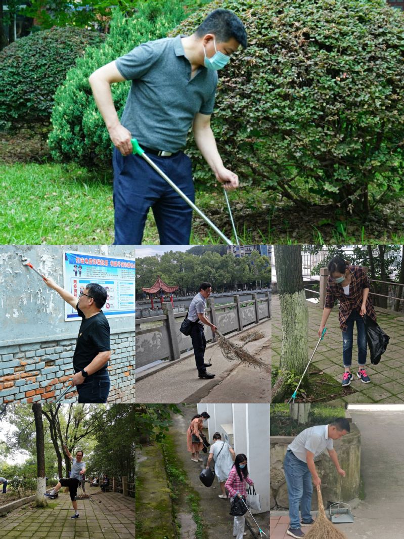 活动当天,上午阴雨绵绵、下午烈日炎炎,学院全体教职工上下齐心、通力协作、任劳任怨、挥汗如雨、热情高涨,活动现场气氛热烈。大家或两三人或六七人为一小组,捡拾烟头、扫除枯叶、剪除杂草、铲除广告、整洁路面、清理死角,严格按照学校“创文”目标任务及责任划分区域,坚决落实从学校东大门起至集贤阁、三角荷塘路段及相关区域的卫生责任,让校园变得更为“洁绿净美”,以实际行动营造人人支持“创文”、人人参与“创文”的良好氛围;以实际成效为全国文明校园建设、全国文明城市创建作出贡献。