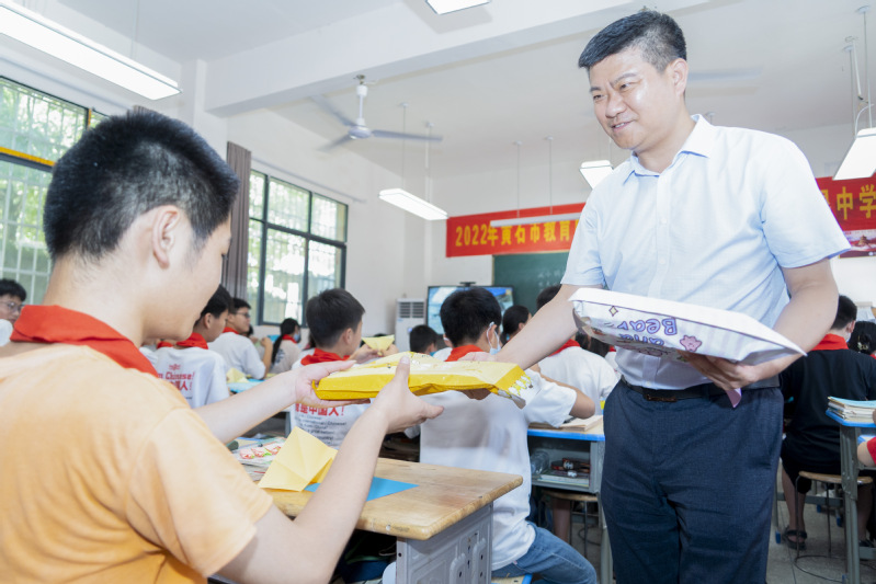 2022年7月13日上午,学校党委副书记马列军,学校相关部门、院系负责人到阳新县军垦中学看望、慰问bevictor伟德官网文化速递实践队队员和支教班学生,团阳新县委和军垦中学相关负责人参加看望。
