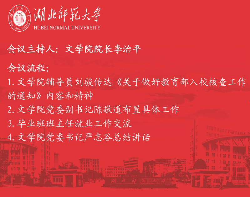 会上,辅导员刘骏传达了学校《关于做好教育部入校核查工作的通知》的重要内容和精神。陈敬道通报了我院2022届研究生、本科生毕业生现阶段升学就业进展和就业数据自查情况,并对下阶段配合上级有关部门的就业工作专项核查和就业推进工作进行安排部署。各毕业班班主任依次就本班就业工作情况作交流发言,分享就业工作经验,研讨就业工作存在问题及应对措施。