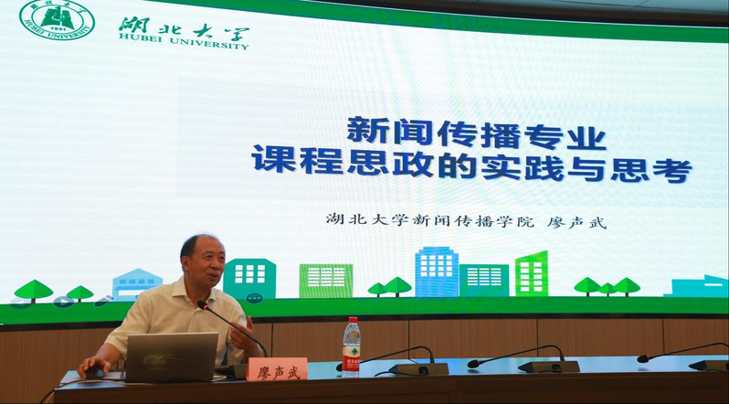 开幕式后,来自武汉大学、华中科技大学、湖北大学等7所省内高校的新闻传播学专业负责人,分别介绍了各自高校新闻传播学和课程思政融合建设的经验,包括新闻传播学专业课程设计方案、学生社会实践案例、教学质量水平等方面。