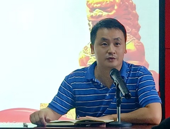 会上,严志谷首先向教职工传达、学习25日上午学校“秋季中层干部大会暨警示教育大会”上校党委书记李宏、校长雷儒金、校纪委书记陆咏梅的讲话精神和学院25日下午党委会、党政联席会议精神;后又由严志谷向教职工通报了学院今年上半年教学、科研发展与学科、专业建设以及师资人才引进、招生就业状况和社会捐赠、学生社会实践情况,还有暑期教职工值班、加班情况等等,并对下半年相关宏观工作进行了部署;各分管领导陈敬道、李有光、彭江浩、王成也就各自分管领域的年度工作目标任务完成进展情况进行了通报、说明和对秋季开学工作师生应予关注、开展的重点事项做了强调、布置。严志谷代表学院党政感谢全院师生上半年的倾心努力和付出,政治安全、事业发展:1.政治方面,以党的政治建设为统领,以新时代党的创新理论武装头脑、指导实践、促进工作,充分发挥基层党组织战斗堡垒作用,课程思政改革不断深化,学生支部积极申报全省党建工作样板支部,政治形势安全、稳定;2.学科、专业方面,继去年获批“中国语言文学与文化传播”省级优势特色学科群、“新闻与传播专业学位硕士授权点”之后,今年上半年汉语言文学专业、汉语国际教育专业又分别获批国家级一流、省一流本科专业建设点;3.科研项目方面,祝永新博士、赵爱武教授分获2022年度教育部人文社会科学研究•青年基金项目、第十三届湖北省社会科学优秀成果三等奖;4.教研方面,继2021年7月曾羽霞博士的《文献学概论》获批“省级线上线下混合式一流课程”后,今年5月和艳芳博士的《大学语文》课程在“智慧树”网络上线,赵亿、李永峻、王成、刘春花、晏亮、和艳芳、李洪亮七位老师获批2022年度校级课程思政示范课程、教学团队;5.教师荣誉方面,张力、李治平、李永峻三位老师分获“省委第二巡视组2021年度先进个人”、学校第一届“我心目中的好导师”、校“2021年实验室工作先进个人”荣誉称号,由常璐、彭江浩老师指导的学生高旭南和曾爱华、张卫兵老师指导的学生应秀瑶分获第十届湖北省高校师范生专业教学技能竞赛高中语文组一等奖、初中语文组二等奖,同时曾爱华老师指导的湖师大文理学院学生分获同赛事高中语文组一等奖、初中语文组三等奖;6.师资人才引进方面,根据学科专业需求大力引进年轻博士,学院现有专任教师中博士学位占比已近70%;7.学术交流方面,启动了“东楚人文论坛”讲座(已开二讲),并承办了新文科背景下新闻传播学课程思政建设研讨会暨湖北省大学生新闻传播教育创新实践技能竞赛评审会(由湖北省高等教育学会新闻与传播教育专业委员会主办);8.社会实践方面,学工暑期带队赴恩施开展“百师百家百生”的“三百”走访慰问活动,学生“文化速递”社会实践队与阳新军垦中学结对成为黄石市乡村振兴七个“青马驿站“点之一;9.招生就业方面,全院教职工全员参与、学工牵头、各科室积极配合,22年已录取新生563人(硕士生47人、全日制本科生311人、“专升本”155人、“第二学士学位”50人)、为历年来之最,本、硕应届生就业率达到预期目标;10.社会捐赠方面,上半年已募捐现金10.72万元、防疫用一次性医疗口罩35万只;11.暑期加班方面,师范专业认证专班各组、值班人员顶烈日、冒酷暑、战高温奋战一线、坚守岗位;等等。严志谷强调,所有成绩的取得来之不易,得力于学校党政的正确领导、职能部门的大力支持、学院党政的精心谋划,更得力于师生的戮力同心、奋力拼搏;同时希望全院师生下半年对照学院年度工作目标任务,认真学习、贯彻、执行李宏书记、雷儒金校长、陆咏梅书记的讲话精神和工作部署,戒骄戒躁、再接再厉,全力以赴、顺利圆满地完成“汉语言文学”师范专业认证工作,并履职尽责地开展好其它各项工作,以优异成绩迎接党的二十大胜利召开。