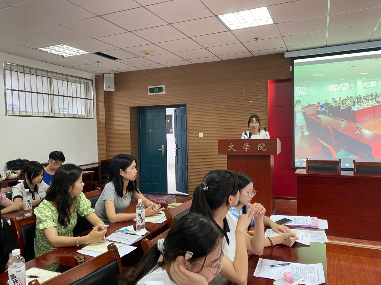 学生代表2020级文艺学方向的王珊简单回顾了过去两年来的研究生生活,她认为,要广泛阅读,找到自己感兴趣的研究方向;要树立终身学习的理念,保持研究热情;要主动尝试新事物,勇于挑战自己;要合理分配自己的时间,兼顾学习与课余生活。