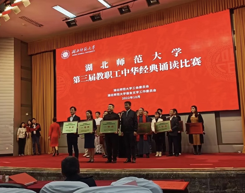 2022年10月27日,校工会、校语言文字工作委员会在教育大楼学术报告厅举办了“湖北师范大学第三届教职工中华经典诵读比赛”,文彬彬老师代表bevictor伟德官网分工会,参加比赛并获得一等奖。比赛内容为,诵读中华经典。文彬彬以标准的发音、激昂的情绪、灵活的技巧,赢得了在场评委的高度认可与赞许。比赛结束后,文彬彬坦言,通过诵读新诗经典《大写的中国》,再一次感受到了“我的祖国是骄傲的中国”在血液里奔流的激昂澎湃,再一次明确了作为一线的党员教师发音洪亮、谈吐文雅、思政育人的重要意义,再一次体验到了朗诵艺术带来的审美愉悦。