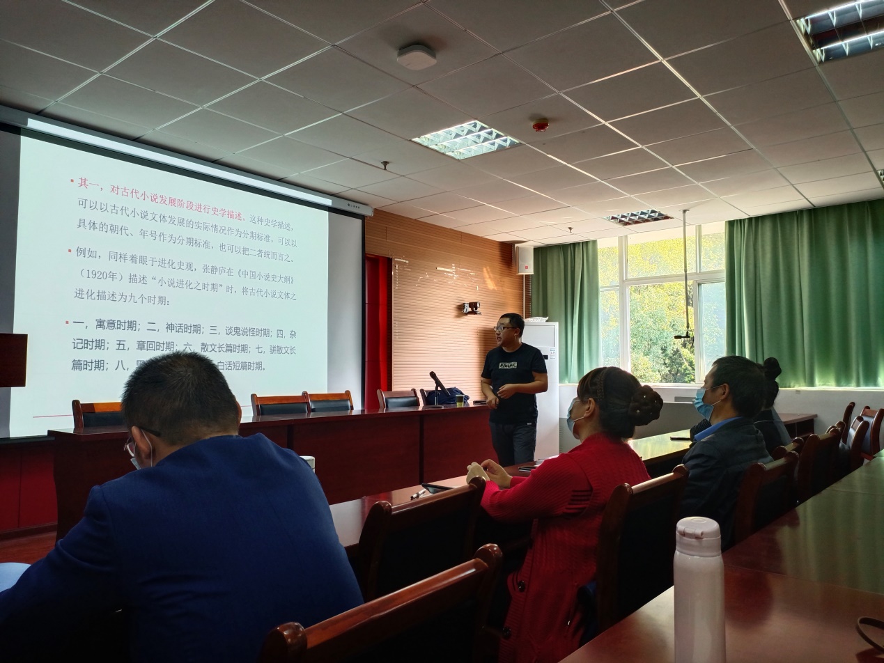 为加强学院师生学术交流、提升学院学术氛围, 2022年11月3日下午14:30,bevictor伟德官网“东楚人文论坛”第四讲在人文楼A座六楼602学术报告厅开讲,报告主题为“如何阅读一本小说史”。此次报告由景遐东教授主持、李春光博士主讲,古代文学教研室全体教师、其他教研室部分教师以及2022级、2021级全体研究生到现场聆听。