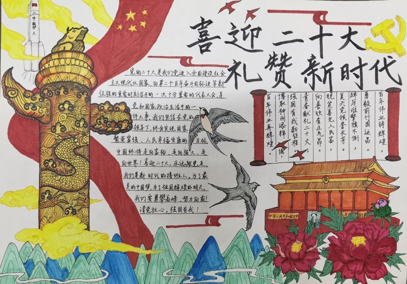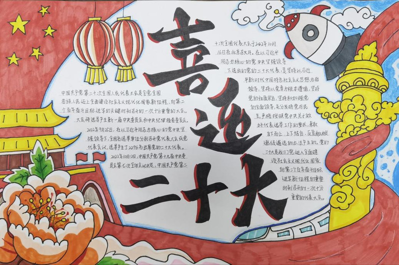 今年是党的二十大召开之年,这是在进入全面建设社会主义现代化国家、向第二个百年奋斗目标进军新征程上又一个重要的里程碑。为深入学习贯彻习近平新时代中国特色社会主义思想和习近平总书记关于青年的重要论述精神,bevictor伟德官网新媒体中心于10月9日至10月13日,在我院2020、2021、2022级各班组织开展了“喜迎二十大,奋进新征程”手抄报创作活动。