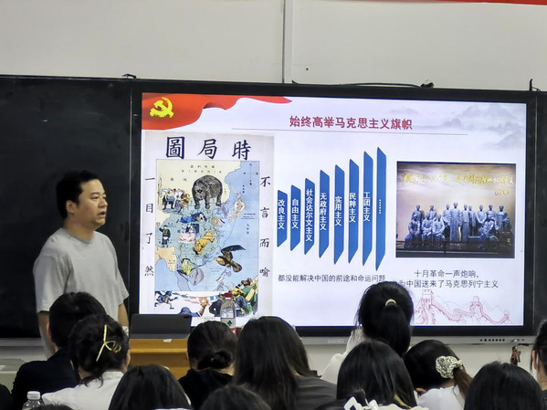 彭舟以“中国共产党的性质、宗旨和路线”为主题,通过视频短片回顾了百年党史,让学员们感受建党历程中共产党人顽强的革命意志和大无畏的先锋精神,彰显了信仰之美、理想之光、真理之力。他指出,马克思主义指引中国革命、建设、改革事业不断走向胜利,中国共产党始终坚持开辟马克思主义中国化时代化理论发展的新境界。彭舟强调,科学的理论指导、坚定的理想信念是党永葆先进的不竭源泉;强大的组织优势、严明的纪律要求,使全党形成上下贯通、运转高效、联系广泛、执行有力的统一整体;彻底的自我革命,持续推进从严治党,锻造风清气正的政治生态;坚实的群众基础,以人民利益为宗旨,让改革发展成果惠及全体人民,无不体现了党的领导优势,彰显着社会主义制度的优越性。最后,彭舟号召学员听党话、跟党走,让青春在全面建设社会主义现代化国家的火热中绽放绚丽之花。