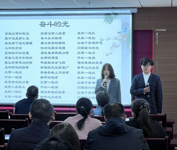 讲堂在道德反省和合唱道德歌曲《奋斗的光》中拉开帷幕。
