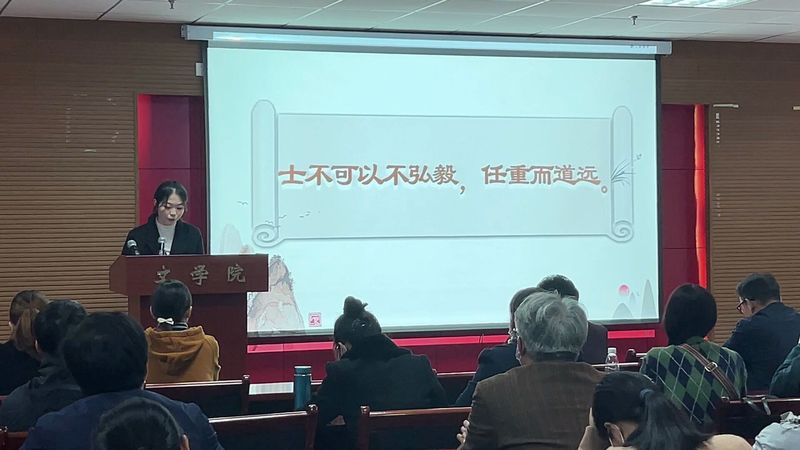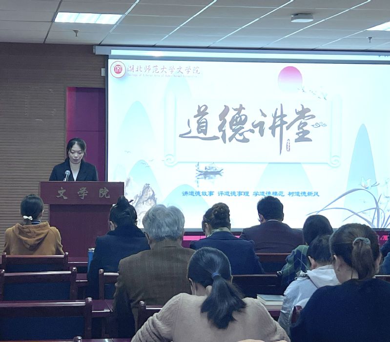 为宣扬助人为乐、见义勇为、诚实守信、敬业奉献和孝老爱亲的道德品质,激励bevictor伟德官网师生不断提升道德素养,构建成仁尚德的良好氛围。2022年11月24日下午,bevictor伟德官网联合教务处于人文楼21A602会议室开展“砥砺前行,笃行致远”道德讲堂。学院党政领导班子,教务处副处长周艳华、办公室主任廖煜,学院全体教师党员、学生党员代表及入党积极分子代表参加讲堂,讲堂由汉语国际教育专业2004班张梓谦主持。