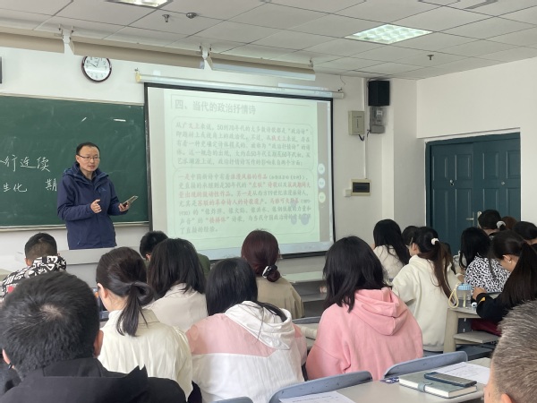 杨文军围绕贺敬之、郭小川两位诗人及他们的代表作品,结合自身研究、创作经验,对当代政治抒情诗的创作特点、风格进行解读分析;并且以融入细无声的方式在课堂中融入思政,调动学生情绪,激发学生的研究、创作热情。