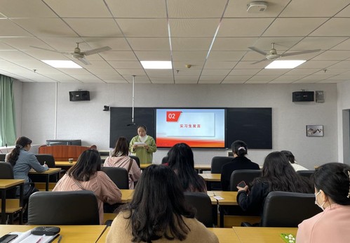 随后,实习生代表庄佳晴进行了表态发言,她指出,将以饱满热情的状态投入实习,以积极健康的心态感悟实习,充分展现湖师学子的优秀精神风貌。