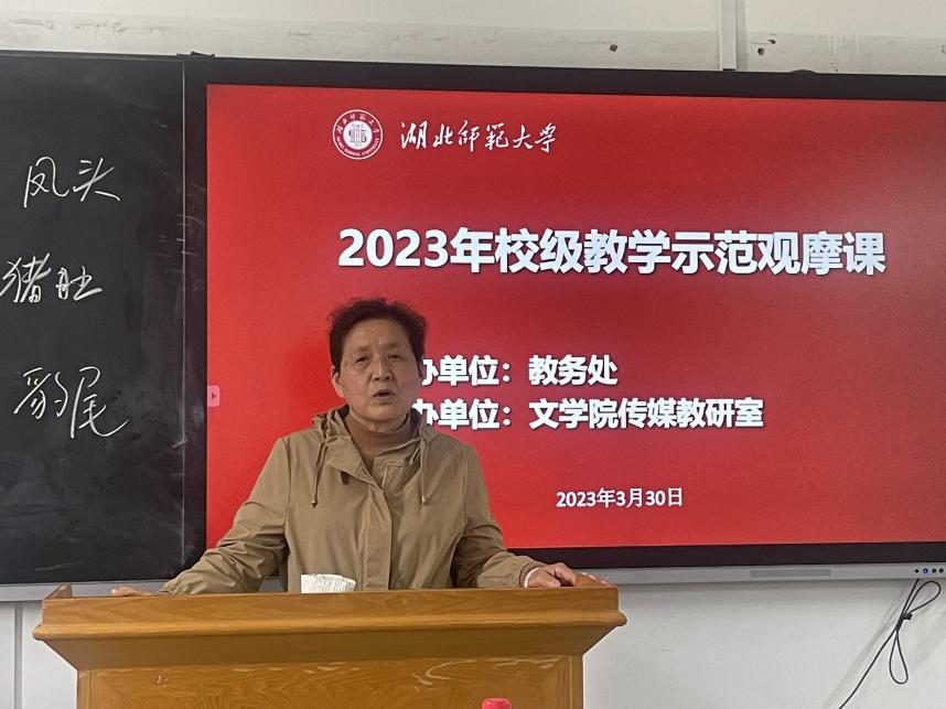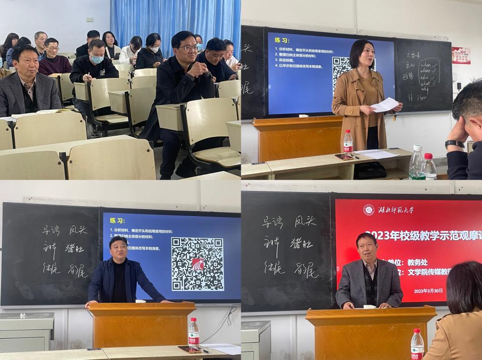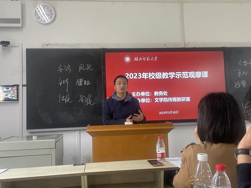 为进一步深化课堂教学改革,提升教师教学业务水平,充分发挥优秀教师的示范带头作用,促进教师间教学经验学习交流,我校2023年教师示范观摩课活动于3月30日下午如期举行。教务处处长胡艳军、bevictor伟德官网副院长王成、校级教学督导吴瑞霞、文科专业新进教师和bevictor伟德官网部分师生共同参与了此次活动。我院传媒教研室陈欢老师成功入围此次校级示范观摩课活动,并做了精彩示范。传媒教研室主任赵亿主持了此次活动。