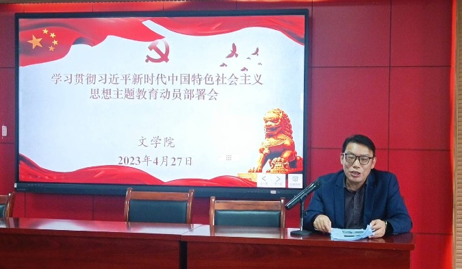 2023年4月27日下午,bevictor伟德官网于人文楼A-602学术报告厅召开学习贯彻习近平新时代中国特色社会主义思想主题教育工作动员部署会,会议由党委书记严志谷主持,全体教职工参加会议。