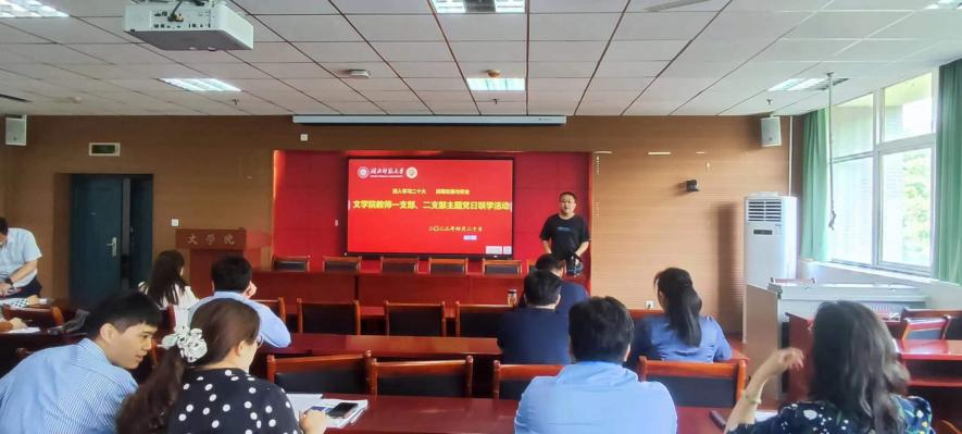活动伊始,党员们交纳党费、诵读党章。“过政治生日”环节,王阅同志结合自身的生活工作经验,表达出不忘初心,牢记使命的意志和决心。本次“主题党日”的学讲话环节,首先由外国文学教研室的文彬彬同志领学深入学习贯彻党的二十大精神(第六次学习);其次由宫小兵同志领学深入学习贯彻习近平新时代中国特色社会主义思想主题教育工作会议精神;彭江浩同志领学深入学习贯彻两会精神;三位同志分别结合领学内容,谈了各自学习的心得体会。二支部书记彭静同志领学深入学习习近平总书记关于国家安全工作的重要论述。