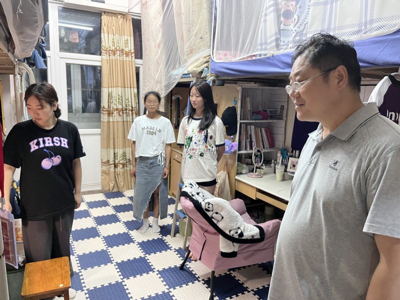 本次检查重点在于宿舍用电安全、宿舍卫生及消防安全。在走访过程中,马列军提醒同学们要自觉遵守宿舍相关安全管理规定,不在寝室中使用明火和大功率电器,如酒精灯、电煮锅等,以免引起火灾,造成不可挽回的后果。另外,他详细了解了同学们近期学习生活情况,叮嘱同学们保持宿舍卫生整洁、注意宿舍用电安全,做到离寝断电,不留安全隐患。在离开学生寝室后,马列军与宿舍管理人员交流沟通,要求宿管员要及时发现和处置安全隐患,以常态化检查督促学生养成良好的安全用电习惯,保障学生宿舍安全。