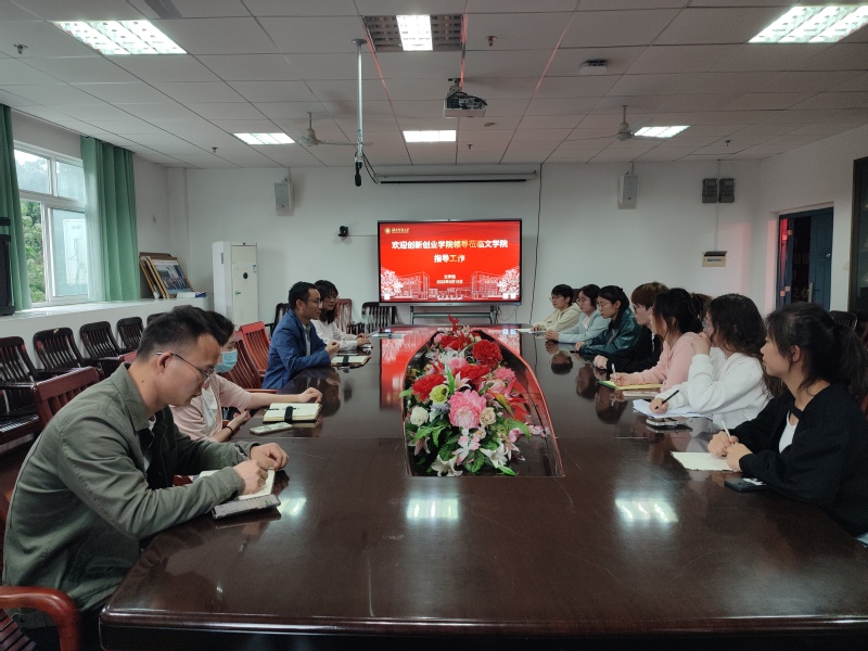 为推进学习贯彻习近平新时代中国特色社会主义思想主题教育走深走实,扎实推进调查研究,促进创新创业工作更高质量发展,根据学校工作安排,2023年5月15日下午,创新创业学院副院长余松林、办公室主任王艳林来bevictor伟德官网调研双创工作优化改革情况。bevictor伟德官网辅导员邱天来、陈洋、吴鸿杰,学生代表参加会议。