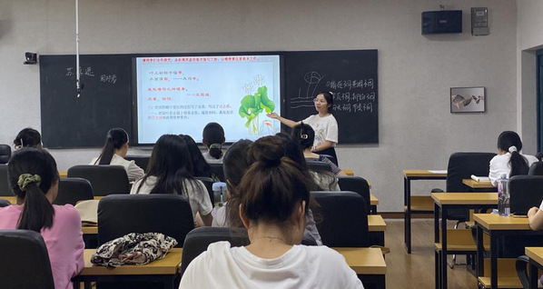 实习生们分别讲解了《祝福》、《虽有嘉肴》、《紫藤萝瀑布》、《说木叶》、《桂枝香金陵怀古》、《登岳阳楼》、《登幽州台歌》、《苏幕遮》、《林教头风雪山神庙》、《拟行路难》等篇目,他们精心准备、创新方法,迎来了台下同学的阵阵掌声。
