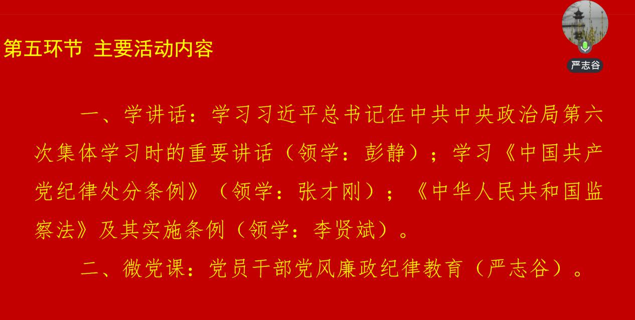 党员同志首先线上重温入党誓词、缴纳7月份党费、并在彭静同志的带领下集体诵读党章总纲第18段。