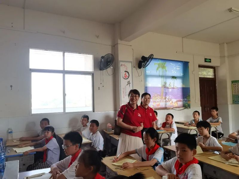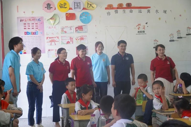 2023年7月26日,bevictor伟德官网党委副书记郭笑笑、副院长彭江浩、学工办主任张力、团总支副书记邱天来到阳新县排市镇山田完全小学和排市镇中心小学看望、慰问文化速递实践队队员和支教班学生。