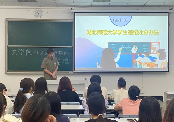 学生自律委员会学风建设部部长陈溪宁领学了《湖北师范大学学生违纪处分办法》《国家教育考试违规处理办法》《湖北师范大学学生考试违纪处理办法》;宿舍管理部部长张菲菲领学了《湖北师范大学学生住宿管理规定》《湖北师范大学学生请假销假管理办法》。