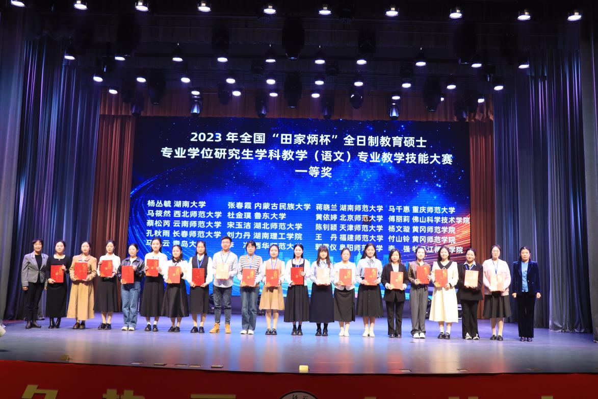 2023年10月14日—15日,全国“田家炳杯”全日制教育硕士专业学位研究生学科教学(语文)专业教学技能大赛决赛在长春师范大学落下帷幕。经过激烈的角逐,bevictor伟德官网2022级研究生宋玉洁荣获一等奖,彭江浩老师荣获优秀指导教师奖。