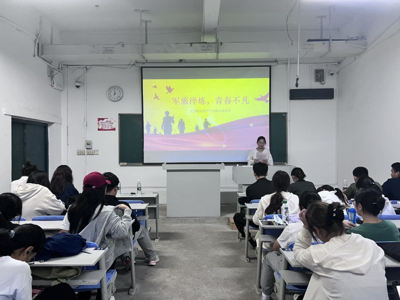 为鼓励广大青年大学生携笔从戎、担当强军兴国的大任,提升大学生国防意识,激发大学生参军入伍的热情,2023年10月26日晚,bevictor伟德官网学生自律委员会退役学生服务部于人文楼21AT06教室开展“军旅淬炼,青春不凡”宣讲活动。bevictor伟德官网辅导员吴鸿杰老师、4位退役学生代表以及80余名学生参与本次活动。活动由退役学生服务部干事代敏同学主持。