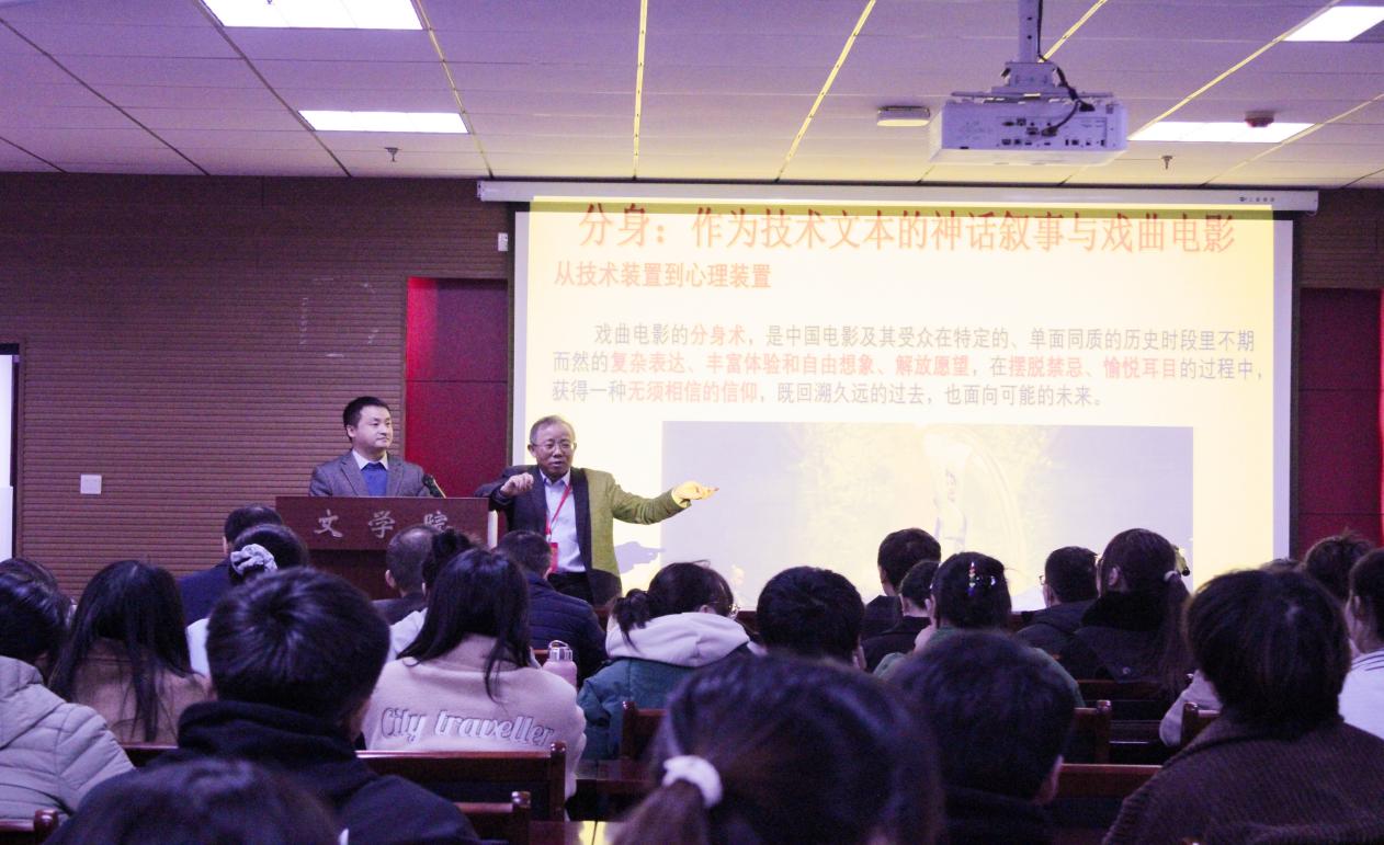 为庆祝湖北师范大学建校五十周年,bevictor伟德官网推出校庆学术系列报告。2023年11月17日下午,bevictor伟德官网校友、北京大学李道新教授作客我校50周年校庆系列学术报告会,为bevictor伟德官网师生作题为“分身:作为技术文本的神话叙事与戏曲电影”的专题学术报告。此次学术讲座在人文楼A座602报告厅展开,bevictor伟德官网特邀嘉宾、bevictor伟德官网班子成员、教师、研究生以及部分本科生参加本次讲座。讲座由副院长王成博士主持。