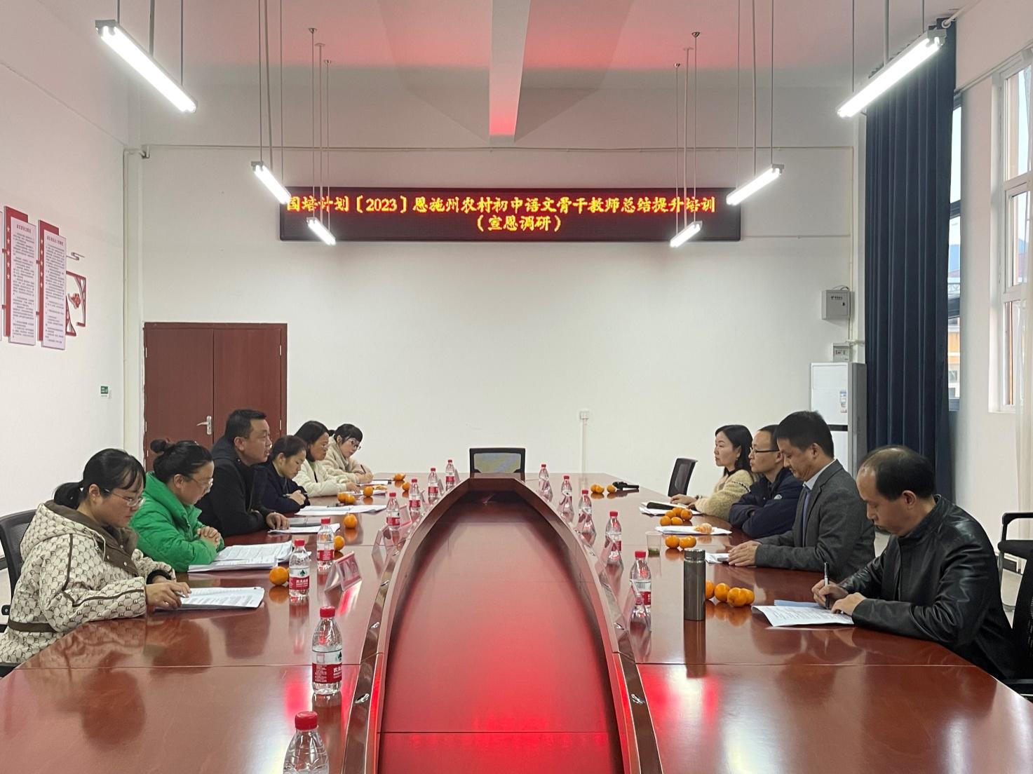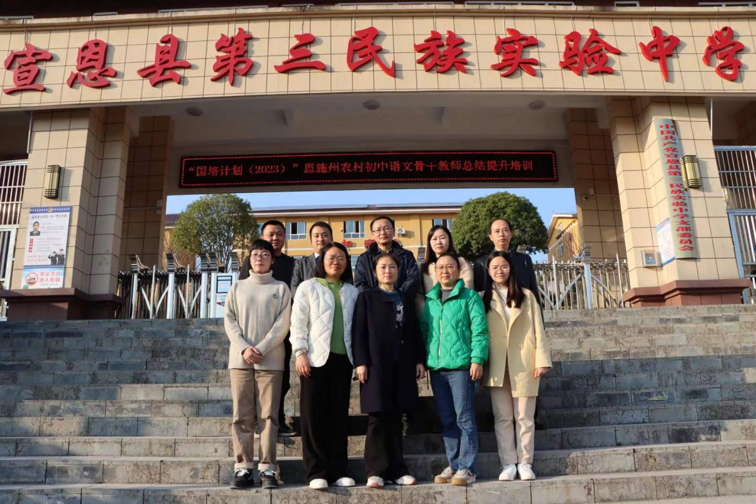 2023年11月22日bevictor伟德官网副院长王成、副院长杨文军、中教法教师曾爱华、教学秘书夏晓庆一行来到宣恩县第三民族实验中学开展“国培计划(2023)”恩施州农村初中语文骨干教师培训总结提升。