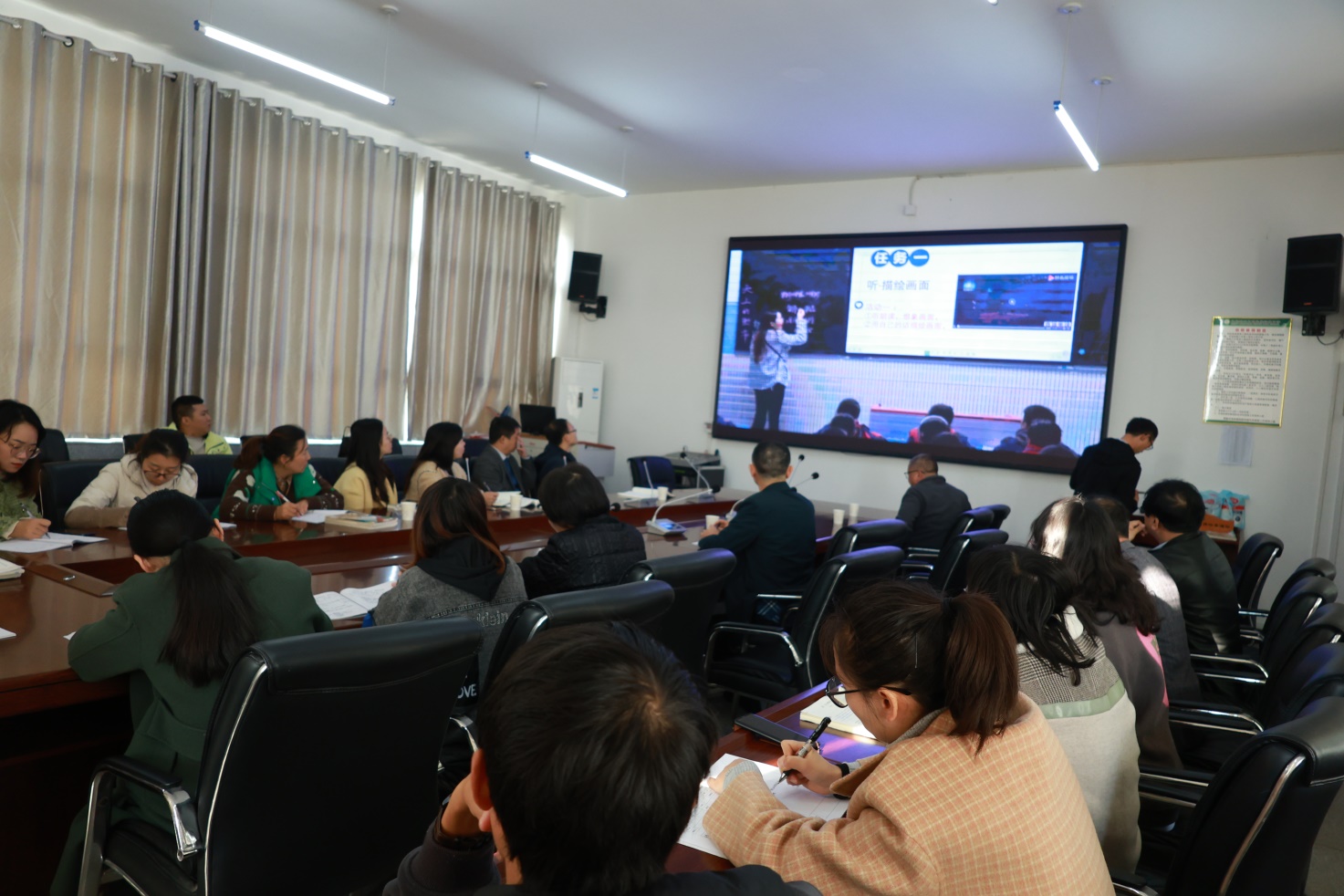 下午,龙凤中学特级教师、国培学员毕文学做题为《初中语文单元教学设计例谈》的报告,毕老师阐释了单元教学的重大意义,并以《品景物之美·感四季芳华》为例讲述应该怎样去设计单元教学,最后提出大单元教学面临的实际困难,鼓励老师们迎难而上,主动适应,勇当时代弄潮儿。