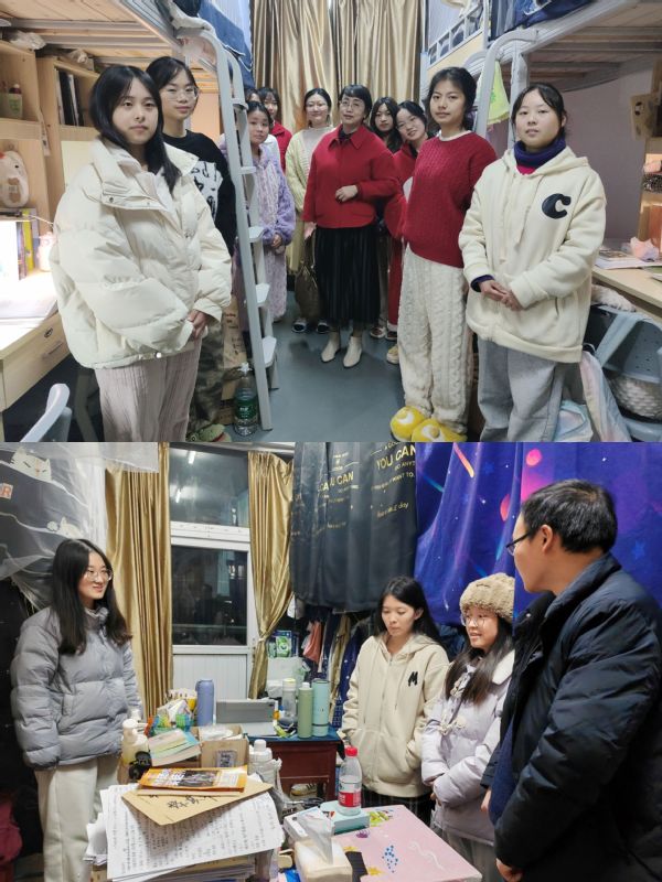 在宿舍走访过程中,学院领导、老师与同学们亲切交谈,询问近期的生活情况和期末复习状态。彭江浩就期末考试提出三点注意事项:掌握答题技巧、认真系统复习、调整应试心态。她指出,在考试时要沉着冷静,切勿漏填个人信息,注意答题的逻辑性和针对性,正确书写题号。杨文军重点叮嘱学生要增强安全防范意识,注意防火防盗,保持室内清洁以及日常通风,建议同学们合理安排自己的时间,认真学习,毕业生要积极参加招聘活动,注重劳逸结合。