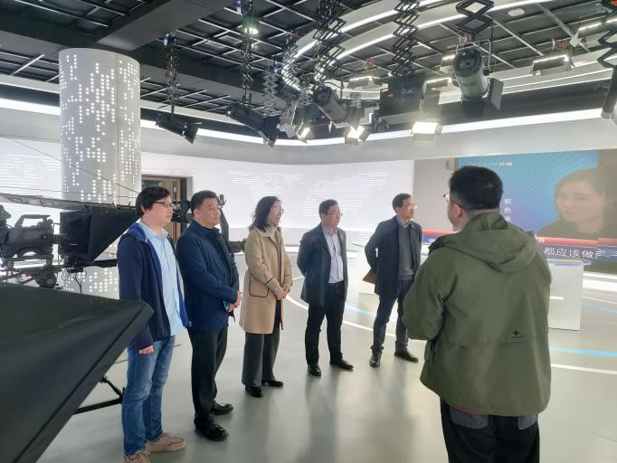 在武汉传媒学院新闻传播学院,副院长赵倩等首先介绍了该院在毕业设计、实践教学、校企合作等方面的创新举措与实际成效,双方就实践类课程的设置、校企合作途径、实验室建设等核心问题进行了探讨。随后,李治平一行在赵倩等人的陪同下参观了融媒体实验中心、短视频制作中心。