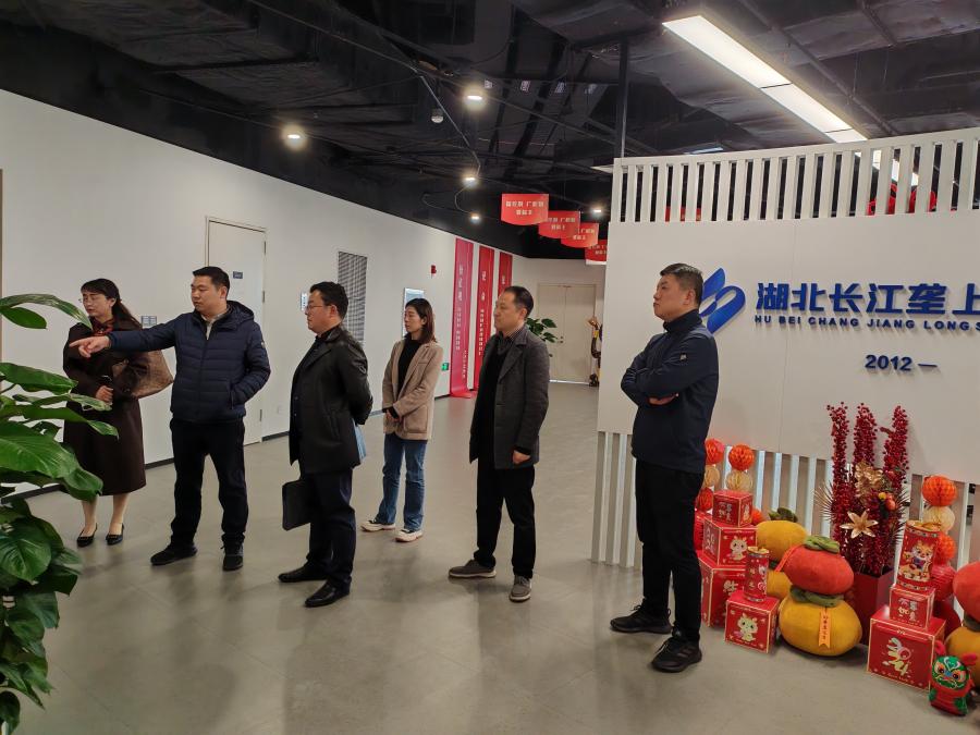 肖鹏等人首先陪同李治平一行参观了电视直播间、机房和集团办公区。在企业文化墙前,肖鹏向李治平等人介绍了湖北长江垄上传媒集团的发展历史,并对集团目前的组织架构、业务范围和运营模式做了详细讲解。