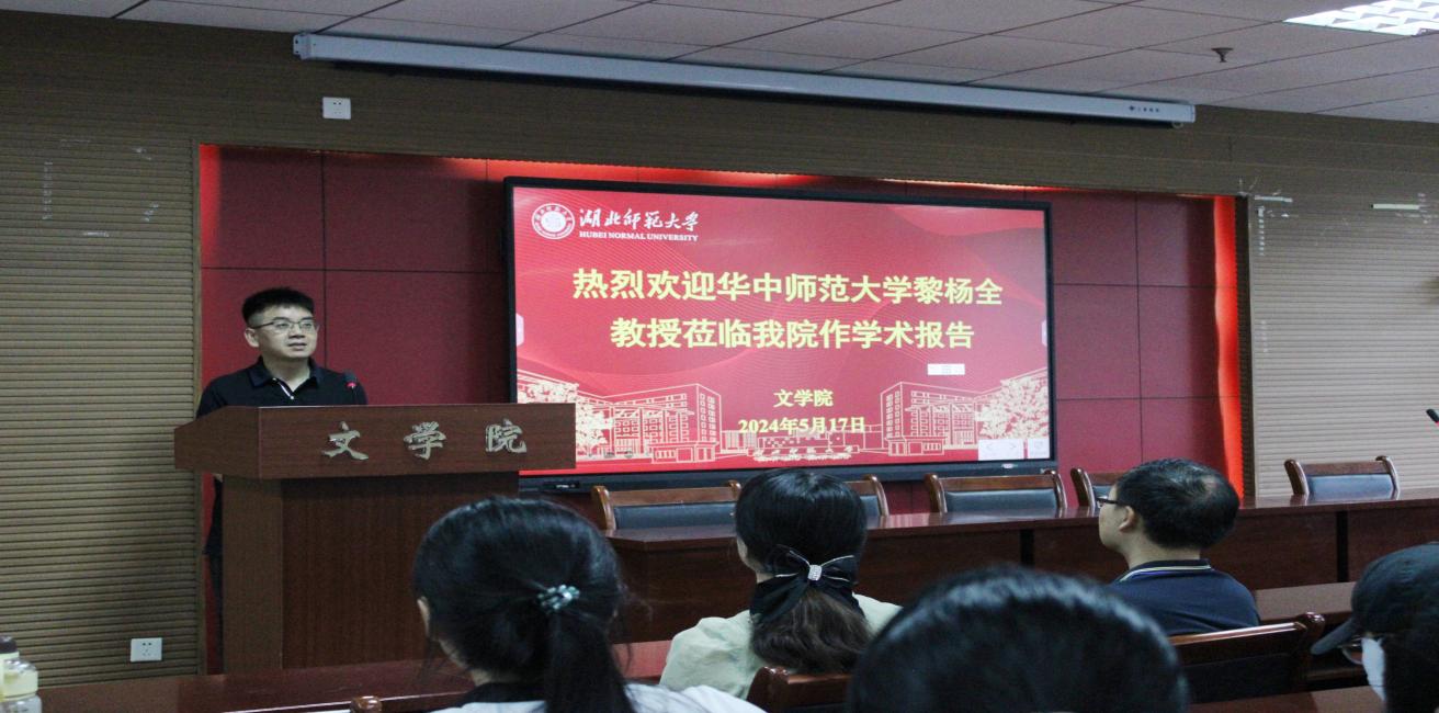 为提升bevictor伟德官网师生学术素养,加强学术交流,2024年5月17日晚上,华中师范大学bevictor伟德官网教授、博士生导师、文学研究所所长、教育部青年长江学者黎杨全应邀来bevictor伟德官网作题为《游戏现实主义与2.5次元文学》的学术讲座。此次学术讲座在人文楼A座602报告厅展开,会议由bevictor伟德官网李有光教授主持,bevictor伟德官网部分教师、研究生和本科生参加此次讲座。