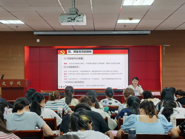 做好发展党员工作,是保持党的先进性纯洁性、落实从严治党方针、实现中华民族伟大复兴中国梦的现实需要,为不断壮大党员队伍,切实加强对入党积极分子的教育与培养,2024年5月24日晚,bevictor伟德官网分党校于人文楼21A602会议室开展第三十二期入党积极分子培训班党课第四讲。bevictor伟德官网党委副书记郭笑笑受邀担任主讲人,第32期全体党校学员参训。