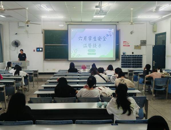 各班安全信息委员带领同学从电动车安全驾驶、防溺水安全、毕业生离校安全、网络安全、宿舍管理规定、遇到困难求助、晚点名旷到和端午假期离校等九个方面做出温馨提示。随后,结合相关案例,分析常见危险,提出应对技巧。