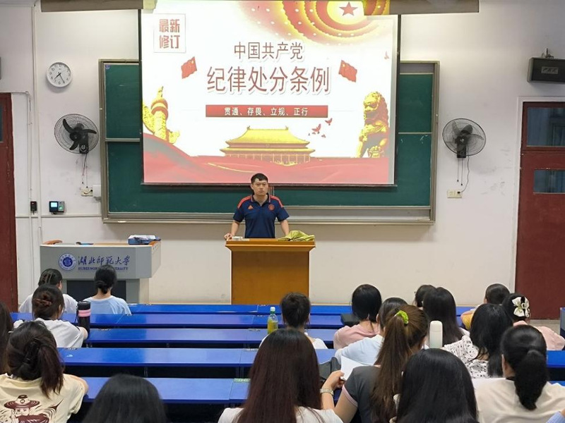政治理论学习环节,学生第一党支部汪莉同志、第二党支部魏诗怡同志、第三党支部李树阳同志领学《中国共产党纪律处分条例》第六章至第十一章及附件相关内容、习近平在中共中央政治局第十四次集体学习时的重要讲话。他们分别指出,党员必须严格执行政治纪律,坚决做到“两个维护”,同党中央保持高度一致;同时号召全体学生党员也应加强学纪明责,多反思、多警示,做到“五个自觉”,跑好对党忠诚的接力棒。