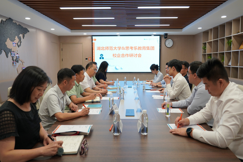 随后,在思考乐教育集团总部,车录彬一行参观了该集团办公区域,并与集团副总裁何凡、人力资源总监饶友等进行座谈。何凡介绍了思考乐集团的办学历史和特色,对近几年我校在该集团工作的毕业生给予了高度评价,其中包括我院毕业生胡蝶、官文洁、张佳玲等。何凡表示,希望能与我校在学生实习、就业等方面开展长期合作。车录彬等在发言中对两校进一步深入合作表示支持。