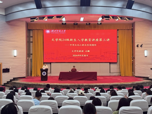 2024年9月30日下午,bevictor伟德官网于教育大楼报告厅开展新生入学教育系列活动第三讲——“感悟中华文化品格与家国情怀”主题讲座,此次讲座由bevictor伟德官网教授石麟担任主讲,院党委副书记郭笑笑主持,教师王路成及2024级全体新生参与。