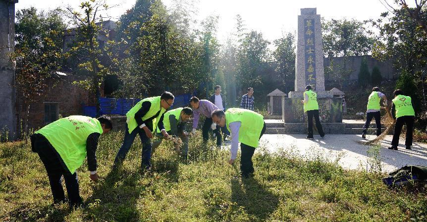 大家首先前往张畈村红色广场,瞻仰革命先烈,追思英雄丰功伟绩。在秦乔楠老师领誓下,全体党员同志面对党旗,举起右拳,重温入党誓词,铿锵有力的宣誓响彻红色广场。全体党员同志认真学习了叶会来、叶会才、叶龙等英雄人物的先进事迹,接受思想上的洗礼。其后,全体党员开展“助力张畈村环境整治义务劳动”主题实践活动,在红色广场打扫卫生,清洁环境。