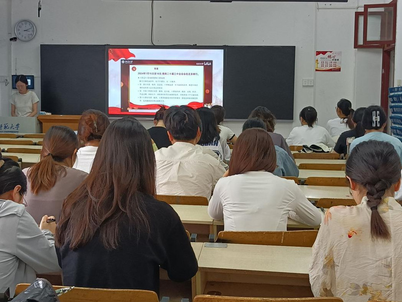 微党课环节,各党支部书记讲授了以《深入学习贯彻党的二十届三中全会精神,凝心聚力推动改革行稳致远》的主题微党课,要求全体学生党员深刻把握进一步全面深化改革的指导思想、总体目标、重大原则、科学方法,坚定改革信心、把准改革方向、强化改革责任、汇聚改革合力。