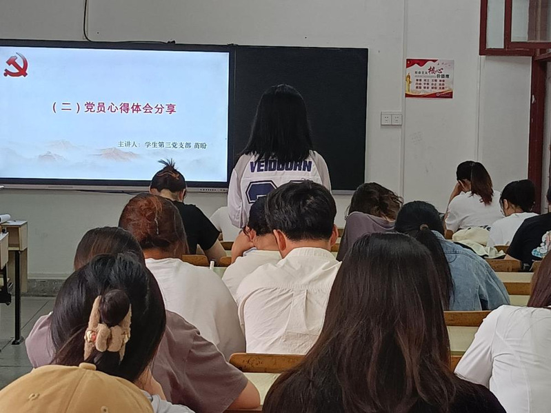 学习体会分享环节,学生党员代表谷顺同志、苗盼同志等强调,作为学生党员要将党的二十届三中全会精神内化于心、外化于行;要敢于担当、勇于负责,面对困难和挑战要挺身而出,主动作为,以实际行动践行党员的初心和使命。