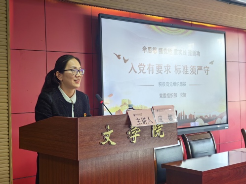 开班典礼结束后,应娜为培训学员讲授“入党有要求,标准须严守”主题党课,她从入党申请要求、党员基本条件、入党积极分子教育考察以及入党流程四个方面展开讲解,引导全体入党积极分子端正入党动机,树立远大理想,锤炼高尚品德,练就过硬本领,肩负时代使命。最后,她预祝每位学员在党校结业时都能学有所获、学有所成、学以致用,期望大家早日成为一名光荣的共产党员。(通讯员:张力、李宝琳)